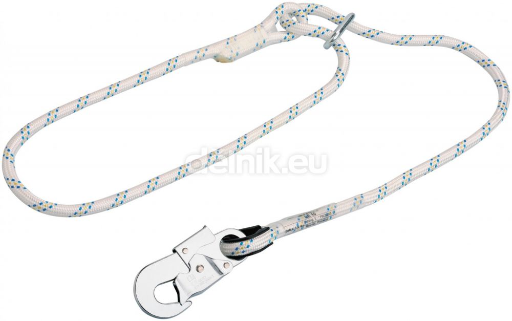 LB 10 – univerzální bezpečnostní lano se seřizovačem (PA lano splétané, ø 12 mm), šité oko s očnicí na jednom konci lana - 1,5 m s ocelovou karabinou s pojistkou – EN 362, EN 354, EN 358 – CE 0082