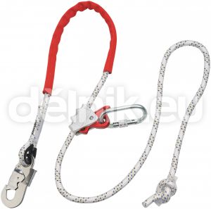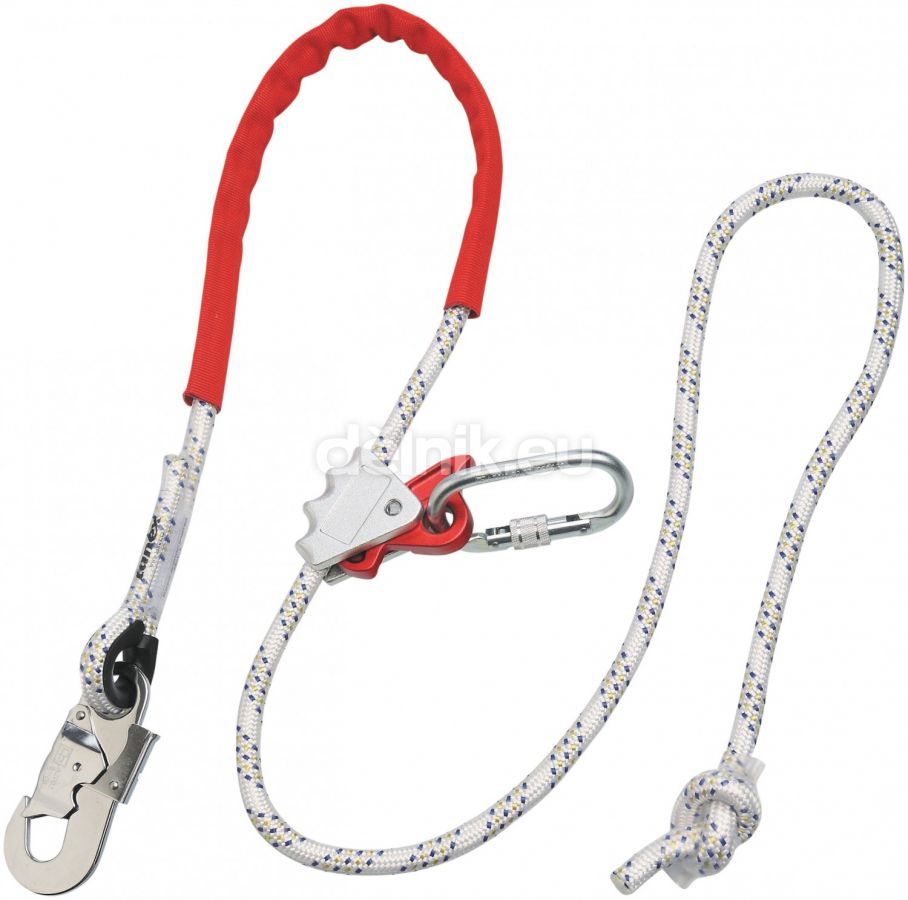 Pracovní polohovací lano se seřizovačem délky a ochranou lana ø 14 mm, šité oko s karabinou AZ 002, karabina AZ 011 standardně na seřizovači – 2 m nebo 3 m, EN 358 – CE 0082