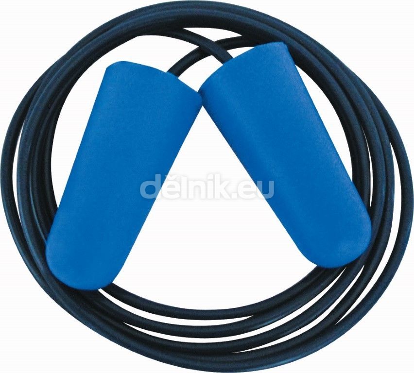 jednorázové zátkové chrániče sluchu z velmi měkké PU pěny v modré barvě, s lankem a kovovou kuličkou detekovatelnou detektorem kovů, s ergonomickým designem pro snažší zavádění do zvukovodu a dokonalé přilnutí k jeho stěnám pro vysoký komfort použití. Vhodné pro použití v potravinářském průmyslu. EN 352-2; materiál spojovacího lanka: PVC, PVC; zátkové chrániče: polyuretan, foam