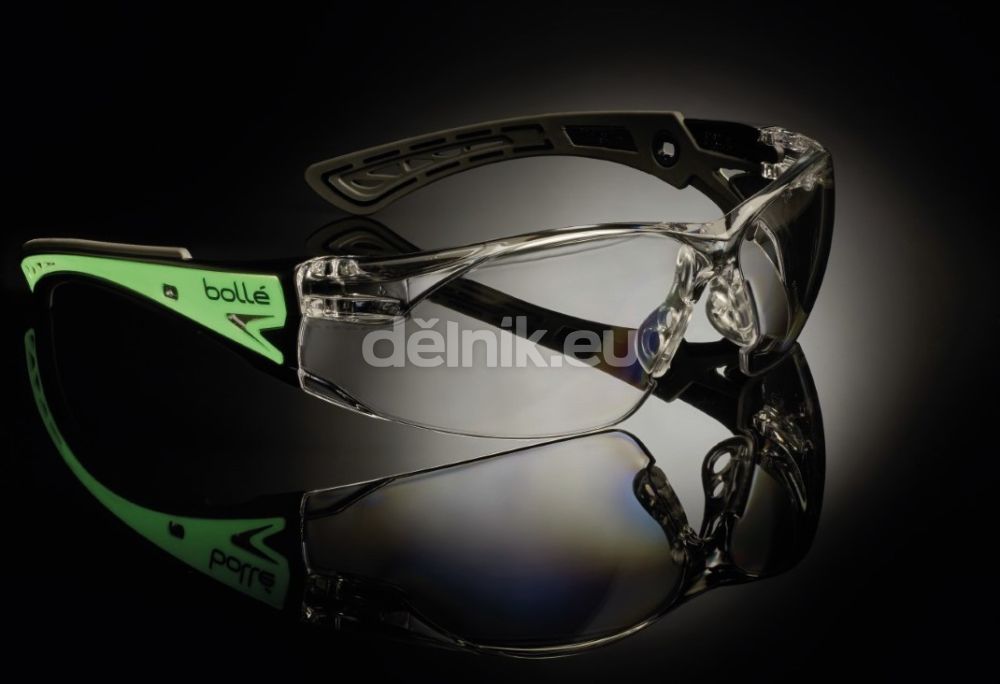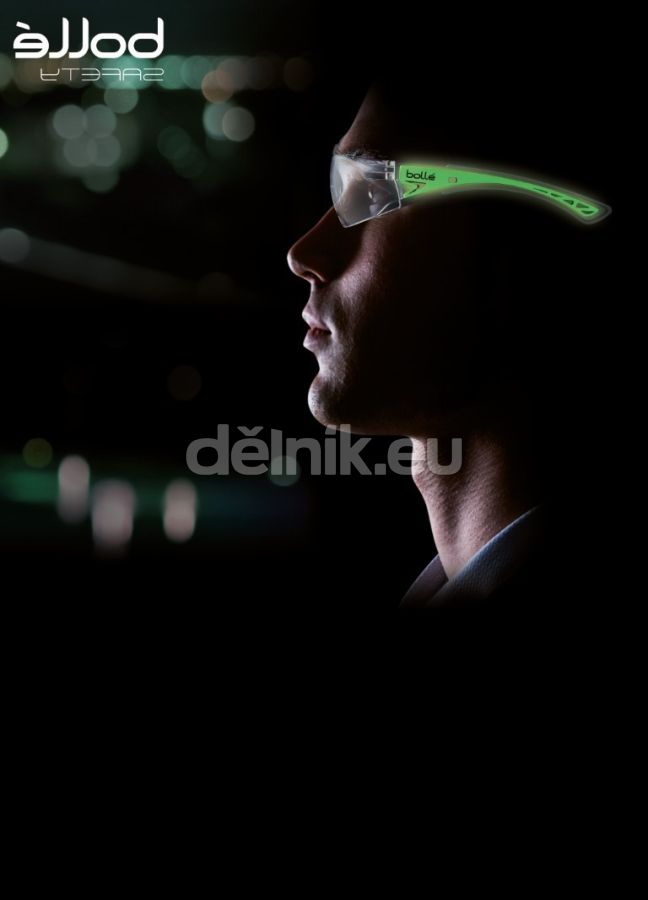 Unikátní spojení skvělého nápadu a výborných pracovních brýlí. Postranní nožičky jsou povrstveny fosforeskujícím materiálem, který umožňuje nožičkám v tmavých prostorách či v noci lehce svítit. Viz obrázek. Povrstvení PLATINUM® zajištuje ochranu proti zamlžení a poškrábání. EN166 1 FT KN, hmotnost: 28 g.