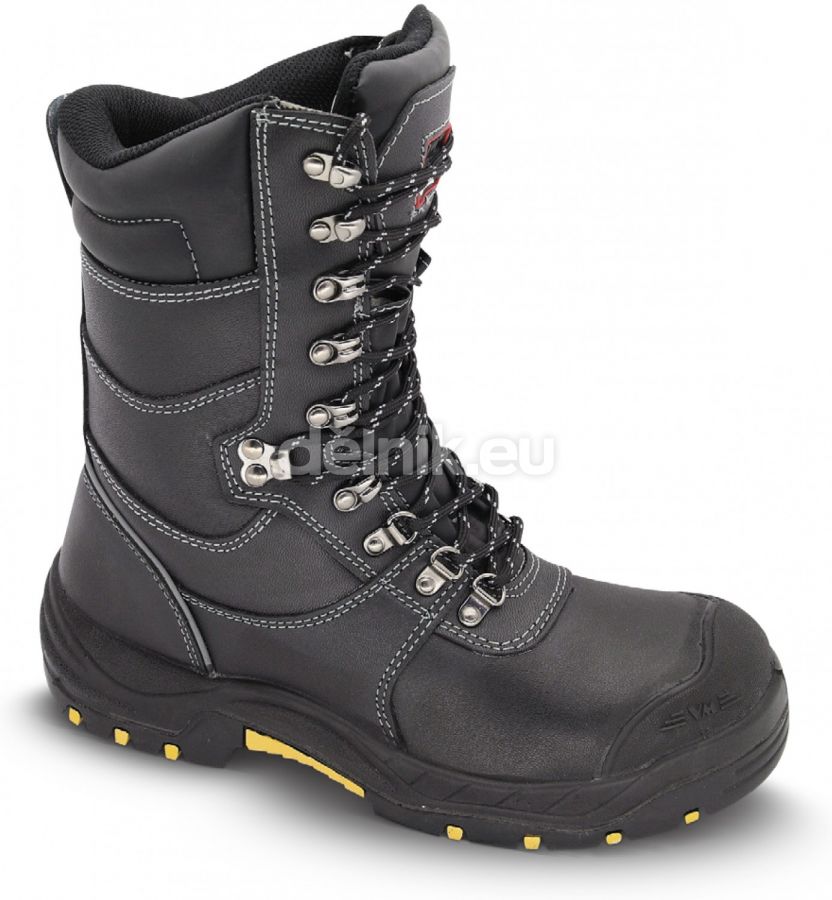 svršek: lícová hovězinová useň v tloušťce 2,0 - 2,2 mm; podšívka: laminovaná termoizolační textilie FLESH; vkládací stélka: HI-POLY - anatomicky tvarovaná z lehčené polyuretanové pěny potažená textilií MESH, antistatická; podešev: PU/RUBBER - do 300°C, olejivzdorná, antistatická, protiskluzová, dvousložkový nástřik; velikost: 37 - 48; norma: ČSN EN ISO 20345:2012 (EN ISO 20345:2011); provedení: S3 HRO SRC - s ocelovou tužinkou a planžetou, hydrofobní