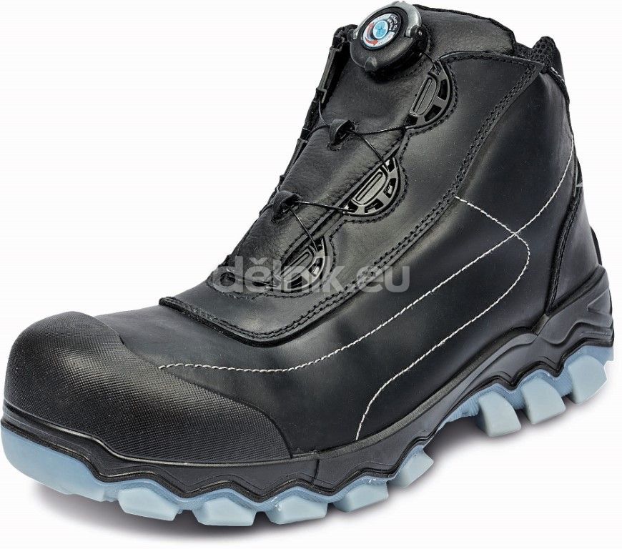 Bezpečnostní kotníková obuv s nekovovou tužinkou a aramidovou stélkou odolnou proti propíchnutí. Podešev vyrobena z PU / TPU. Svršek z kvalitní lícové kůže. Unikátní rychlozapínání pomocí kolečka.