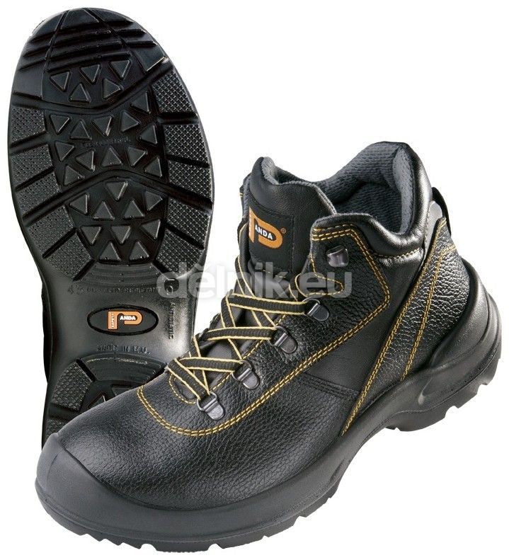 Bezpečnostní kotníková obuv s ocelovou tužinkou i stélkou odolnou propíchnutí, antistatickou a protiskluzovou PU/PU podrážkou rezistentní kyselinám a olejům, absorpcí energie v patě, voděodolným svrškem z prodyšné kůže a reflexními komponenty pro zvýšení viditelnosti.