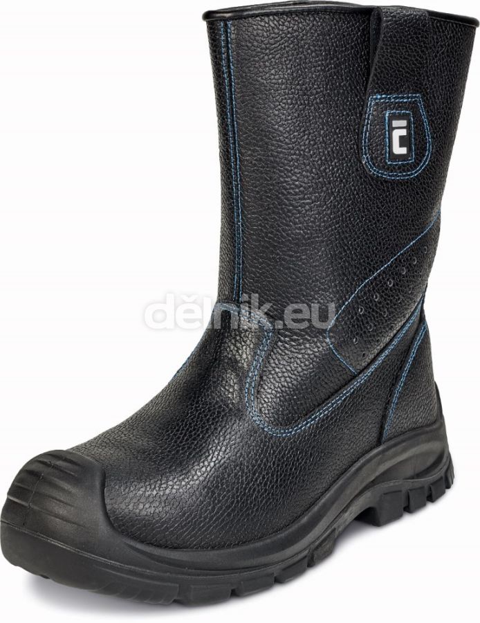 Bezpečnostní holeňová nazouvací obuv s kovovou tužinkou a stélkou odolnou proti propíchnutí. Podešev z dvouhustotního PU s masivní ochranou vůči okopu. Svršek z voděodolné kůže.