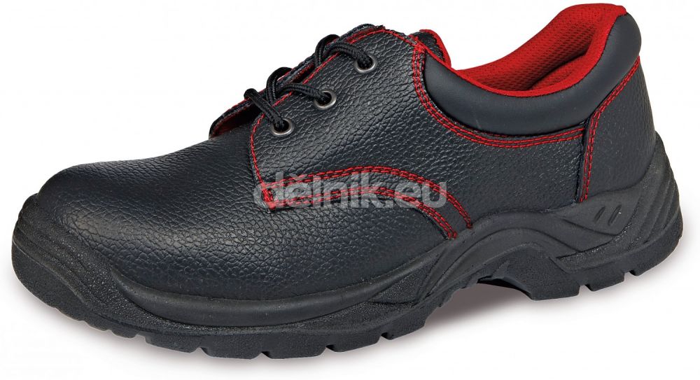 Bezpečnostní polobotky s ocelovou tužinkou, PU/PU podrážkou, rezistentní olejům. Svršek – reliéfní štípaná kůže.
