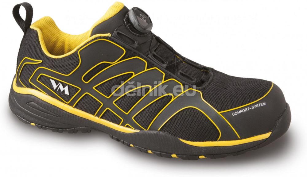 svršek: prodyšný, oděru-vzdorný textil s CPU potiskem; podšívka: laminovaná prodyšná textilie MESH; vkládací stélka: anatomicky tvarovaná z materiálu EVA s vysokou absorpční schopností, antistatická; podešev: EVA/RUBBER - lepená kosntrukce; velikost: 39 - 47; použití: obuv vhodná pro denní nošení a lehké outdoorové aktivity; provedení: barva černožlutá, s uzavíracím systémem Boa® Closure Systém
