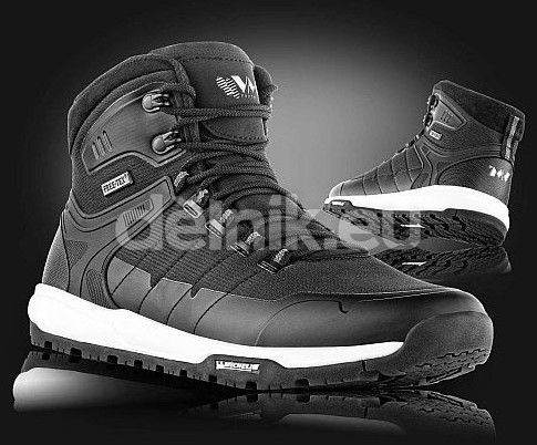 svršek oděruvzdorný a voděodolný textil s TPU potiskem podšívka termoizolační paropropustná MEMBRÁNA FREE-TEX® vkládací stélka HI-POLY – anatomicky tvarovaná z lehčené polyuretanové pěny potažená textilií MESH, antistatická podešev MICHELIN EVA/RUBBER – lepená konstrukce, protiskluzná ICE GRIP TECHNOLOGY velikost 40 – 47 použití obuv vhodná pro denní nošení a outdoorové aktivity provedení barva černá, FREE-TEX®