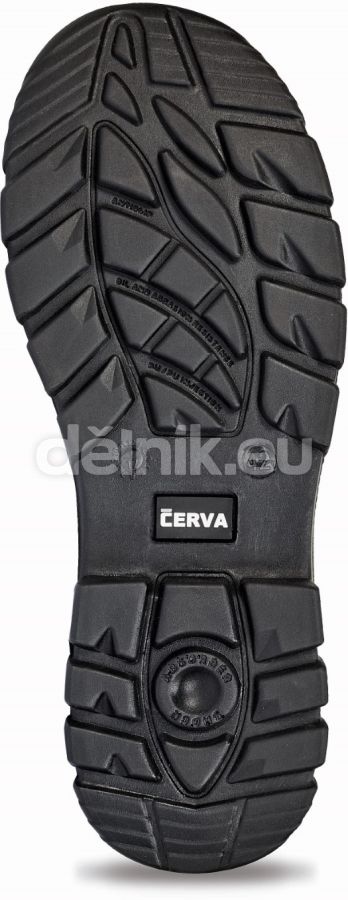 Bezpečnostní polobotka s kovovou tužinkou a stélkou odolnou proti propíchnutí. Podešev z dvouhustotního PU s masivní ochranou vůči okopu. Svršek z voděodolné kůže.