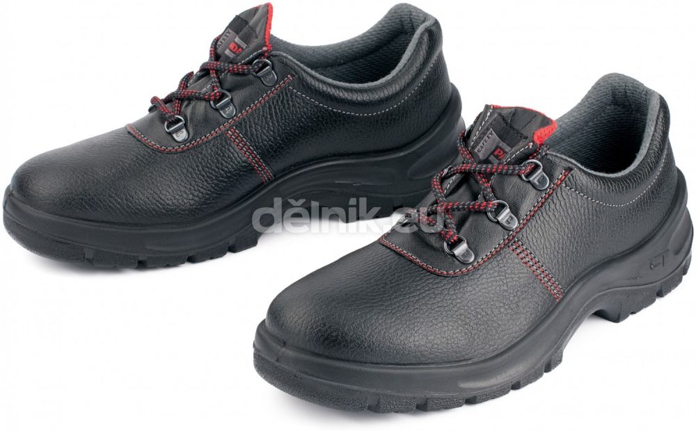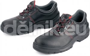 Bezpečnostní polobotky s ocelovou tužinkou, antistatickou a protiskluzovou podrážkou odolnou pohonným hmotám, absorpcí energie v patě a svrškem z prodyšné kůže.