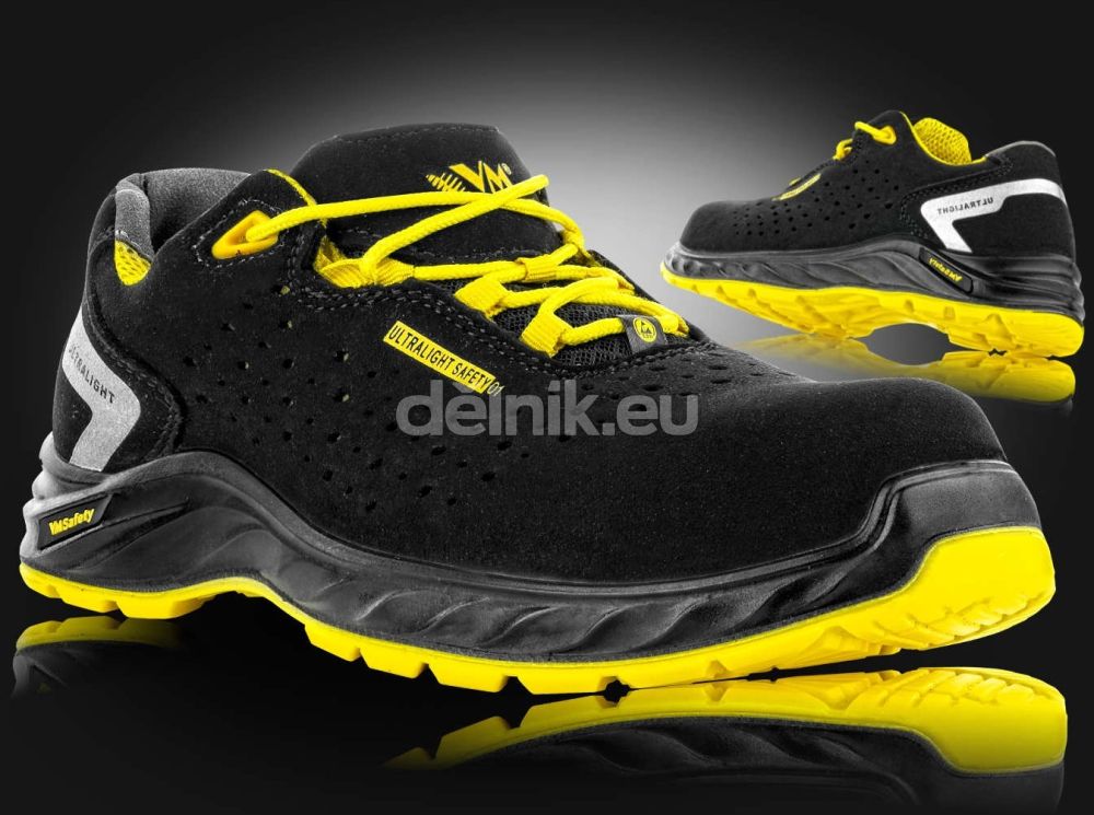 Inovativní pracovní polobotka VM CHICAGO O1 z nové kolekce ULTRALIGHT. Tato kolekce pracovní obuvi se vyznačuje extrémní lehkostí a vzdušností díky použití nejmodernějších materiálů. Svršek obuvi je vyroben z moderního poromerického perforovaného materiálu microfibre s laminovanou prodyšnou textilií MESH. Podešev vyrobena z dvoukomponentního nástřiku PU/PU je antistatická, olejivzdorná a protiskluzová. Díky modernímu tvaru a dezénu má nejlepší možné protiskluzné vlastnosti SRC. Vkládací anatomicky tvarovaná stélka z lehčené polyuretanové pěny potažené textilií MESH s antistatickým prošitím. Obuv splňuje požadavky na použití v ESD provozech (EN 61340-5-1:2012) a tam, kde je nutné používat obuv bez kovových částí- non-metalic obuv.