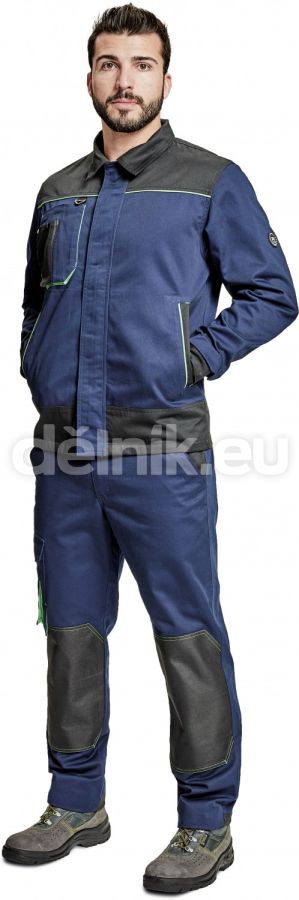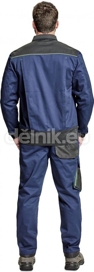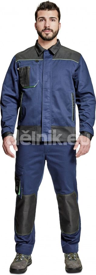 pánská pracovní bunda; materiál s vysokým procentem bavlněného podílu; moderní střih; zesílená oblast ramen materiálem Oxford; 2 boční lištové kapsy; 1 multifunkční náprsní kapsa; kontrastní paspulky; nastavitelná šíře rukávu na suchý zip; "D" kroužek; svrchní materiál: 60 % bavlna, 40 % polyester, 230 g/m²; svrchní zesílená vrstva: 100 % polyester