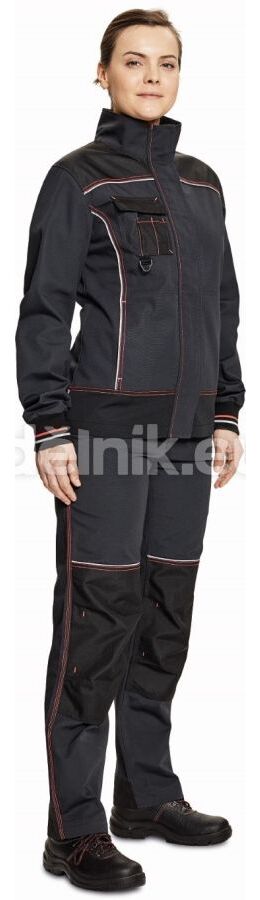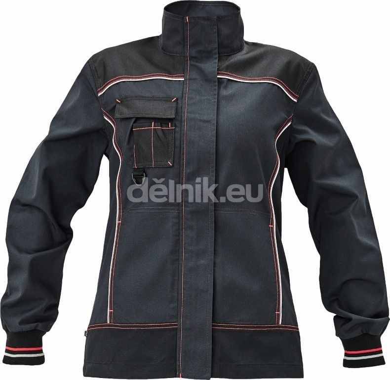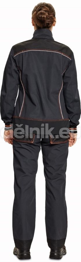 dámská pracovní bunda moderního střihu se stojáčkem; hluboké postranní kapsy; multifunkční náprsní kapsa; D kroužek pro přichycení identifikační karty; zesílená oblast ramen; náplety na rukávech; prošití kontrastní nití v hi-vis barevném odstínu; svrchní materiál: 65 % polyester, 35 % bavlna, 270 g/m²; svrchní zesílená vrstva: polyester