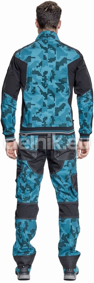 pánská pracovní bunda se stojacím límcem, celopropínací zip, elastický inovativní materiál TRIFIBETEX® v přírodním maskování, ergonomický střih, zesílená oblast ramen z materiálu CORDURA, 2 boční kapsy, 2 náprsní kapsy na zip, reflektivní prvky v barevném odstínu; svrchní materiál: 62 % bavlna, 35 % polyester, 3 % elastan, 260 g/m², TRIFIBETEX; svrchní zesílená vrstva: polyamid (nylon)