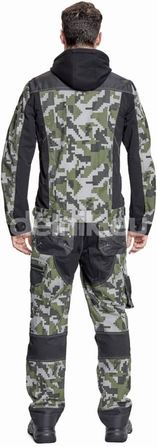 pánská pracovní bunda se stojacím límcem, zapínáním na druky a odepínací kapucí, elastický inovativní materiál TRIFIBETEX® v kombinaci se 4way strečovým materiálem TRIFIBETEXPRO®, atraktivní design, ergonomický střih, zesílená oblast ramen z materiálu CORDURA, 2 boční kapsy, 2 náprsní kapsy na druky, nastavitelná šíře rukávů se zapínáním na druky, dekorativní trojité prošívání, reflektivní prvky v barevném odstínu; svrchní materiál: 62 % bavlna, 35 % polyester, 3 % elastan, 260 g/m², TRIFIBETEX; svrchní zesílená vrstva: polyamid (nylon)