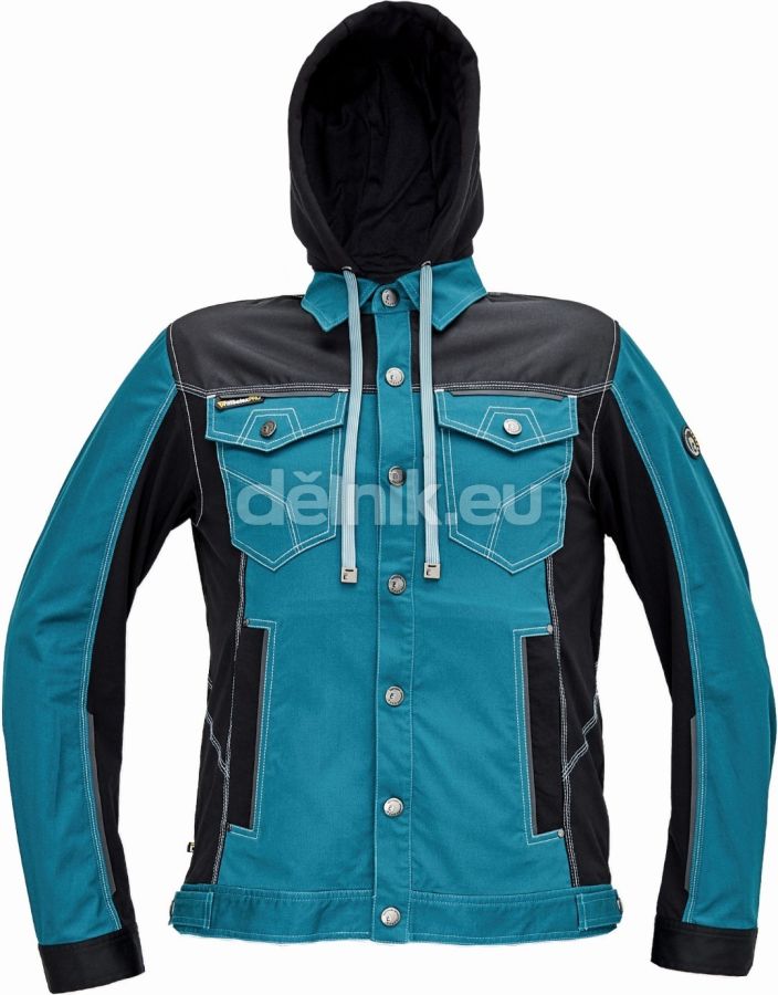 pánská pracovní bunda se stojacím límcem, zapínáním na druky a odepínací kapucí, elastický inovativní materiál TRIFIBETEX®, ergonomický střih, zesílená oblast ramen z materiálu CORDURA, 2 boční kapsy, 2 náprsní kapsy na druky, reflektivní prvky v barevném odstínu; svrchní materiál: 62 % bavlna, 35 % polyester, 3 % elastan, 260 g/m², TRIFIBETEX; svrchní zesílená vrstva: polyamid (nylon)