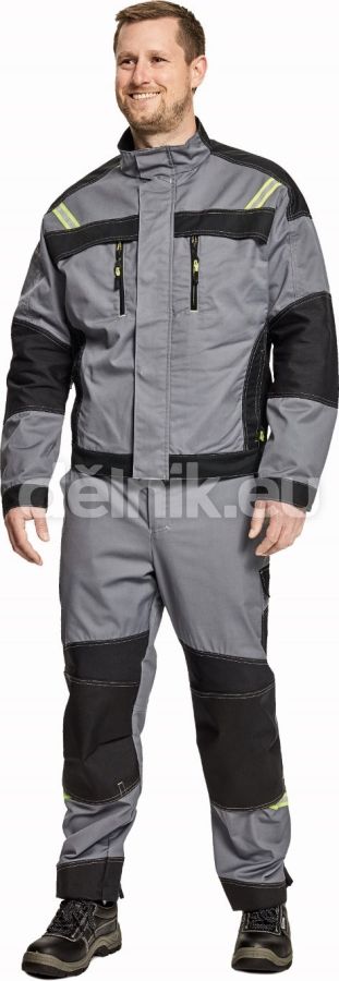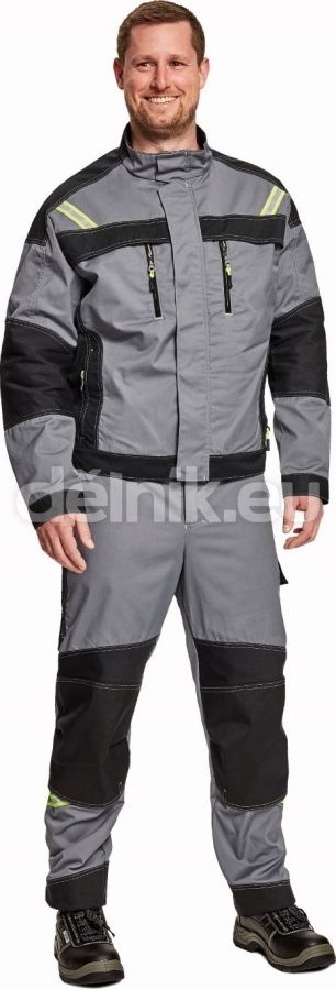 pánská pracovní bunda se stojacím límcem a zapínáním na zip krytým légou; 2 boční kapsy na zip; 2 náprsní kapsy na zip; CORDURA zesílení namáhaných částí; odvětrání v podpaží; reflexní pruhy; nastavení obvodu pasu; svrchní materiál: 65 % polyester, 245 g/m², 35 % bavlna; svrchní zesílená vrstva: polyamid (nylon)