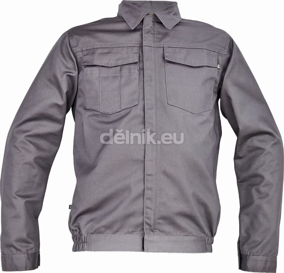 pánská lehká pracovní bunda, zapínání na zip kryté légou na suchý zip; 2 náprsní kapsy s klopou; elastický lem v bocích; nastavitelná šířka rukávů pomocí suchého zipu; svrchní materiál: 65 % polyester, 35 % bavlna, 195 g/m²