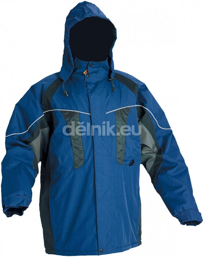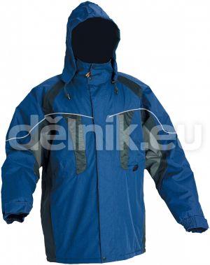 NYALA pracovní bunda modrá - Zateplená nepromokavá bunda,100% polyester povrstvený PVC, zateplení a podšívka polyester, vnitřní kapsa na mobil, kapuce v límci, velikosti S - XXXL