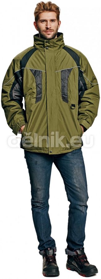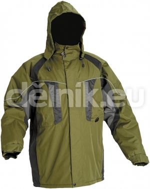 NYALA pracovní bunda zelená - Zateplená nepromokavá bunda,100% polyester povrstvený PVC, zateplení a podšívka polyester, vnitřní kapsa na mobil, kapuce v límci, velikosti S - XXXL