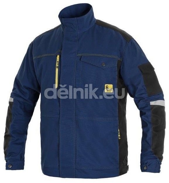 Pánská montérková blůza, strečová tkanina umožňující volný pohyb, ramena vyztužena 600D polyesterem, rukávy s nastavitelnou manžetou, kapsička s klopou na levém rukávu, kryté zapínání na zip a druky, náprsní kapsy - na druk a zip, boční kapsy na zip, regulovatelný pas, větrání na zádech, reflexní doplňky. Doporučené použití: strojírenství, stavebnictví, lehký průmysl, automobilový průmysl, logistika, skladová manipulace, spedice, autoservisy, údržba, montáže, zemědělství, zahrada, hobby. Složení: 98% bavlna, 2% elastan, 250g/m2