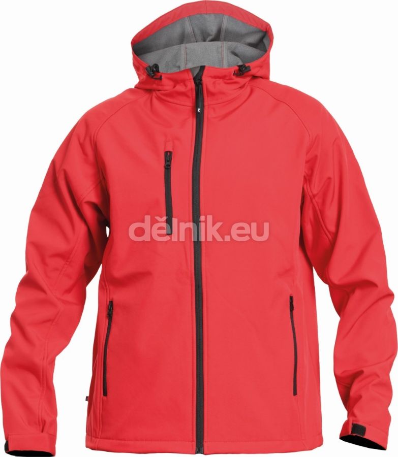 softshellová bunda s kapucí, membránou a vnitřní fleecovou vrstvou; zapínaní na zip; 1 náprsní kapsa, 2 boční kapsy na zip; nastavitelný obvod kapuce; nastavitelná šířka rukávů pomocí suchého zipu; svrchní materiál: 100 % polyester, 290 g/m²