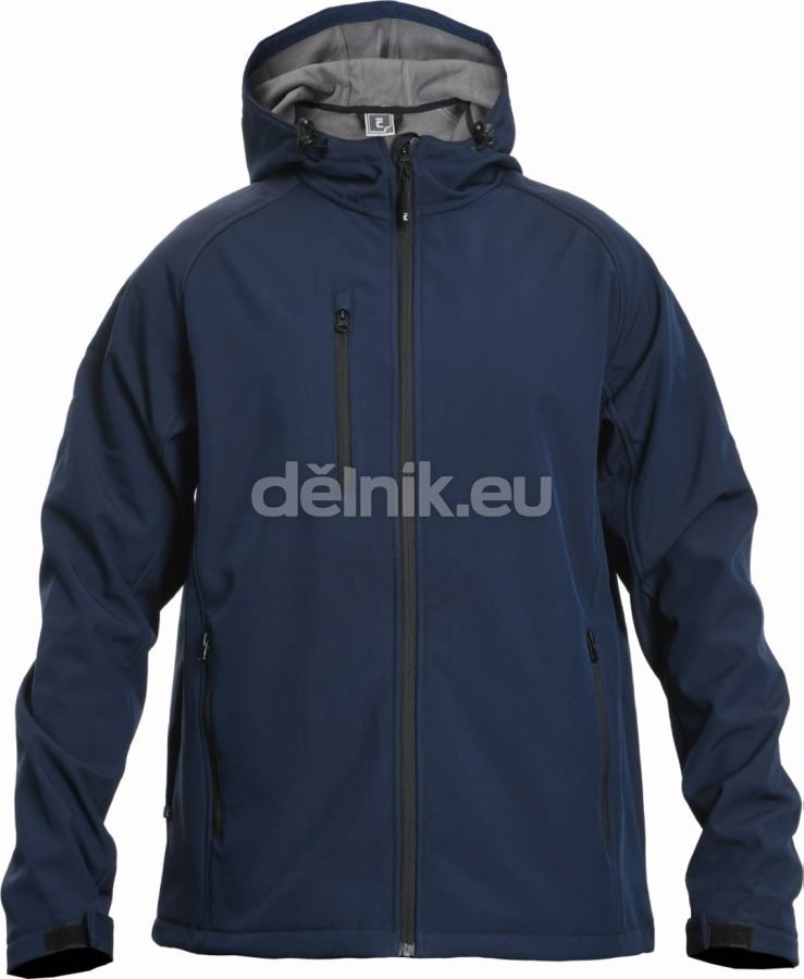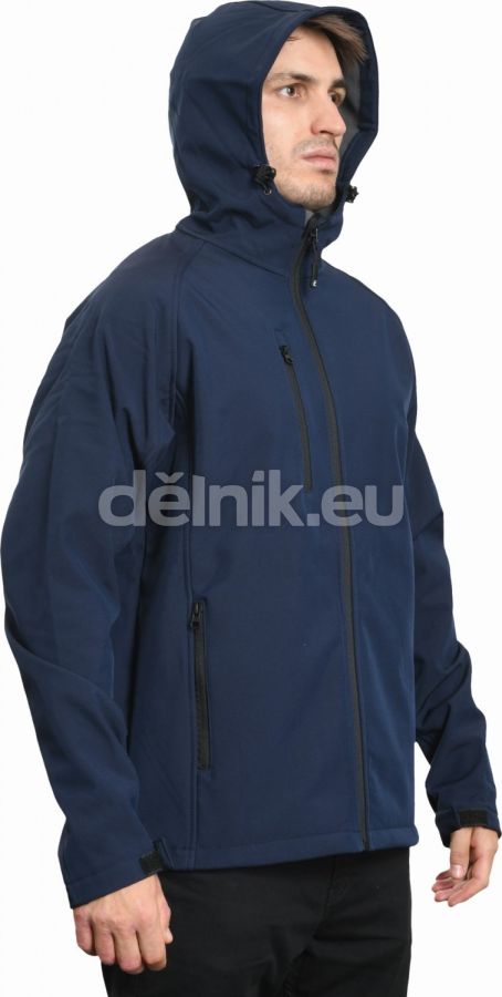 softshellová bunda s kapucí, membránou a vnitřní fleecovou vrstvou; zapínaní na zip; 1 náprsní kapsa, 2 boční kapsy na zip; nastavitelný obvod kapuce; nastavitelná šířka rukávů pomocí suchého zipu; svrchní materiál: 100 % polyester, 290 g/m²