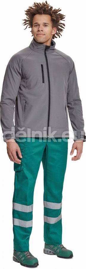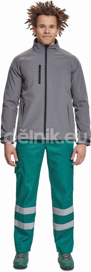 pánská softshellová bunda s membránou a vnitřní fleecovou vrstvou; zapínaní na zip; 1 náprsní kapsa, 2 boční kapsy na zip; svrchní materiál: 94 % polyester, 6 % elastan, 300 g/m²
