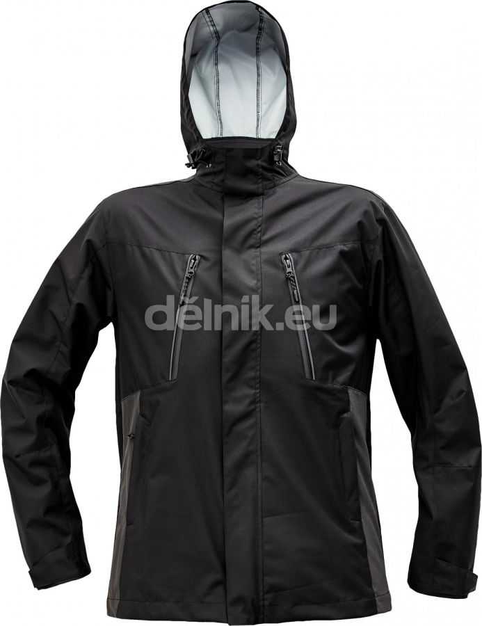 pánská lehká venkovní bunda s kapucí; voděodolná a prodyšná; 4 kapsy na zip; nastavitelné rukávy na suchý zip; nastavitelná kapuce se stahovací šňůrkou; reflexní odstín v barevném lemování; svrchní materiál: 97 % polyamid (nylon), 3 % elastan, 245 g/m²