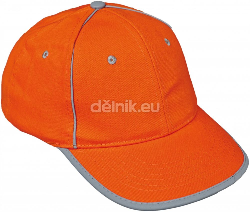 RIOM pracovní čepice oranžová - Baseballová šestipanelová čepice s refl exními doplňky, zapínání na suchý zip, materiál 100% česaná bavlna