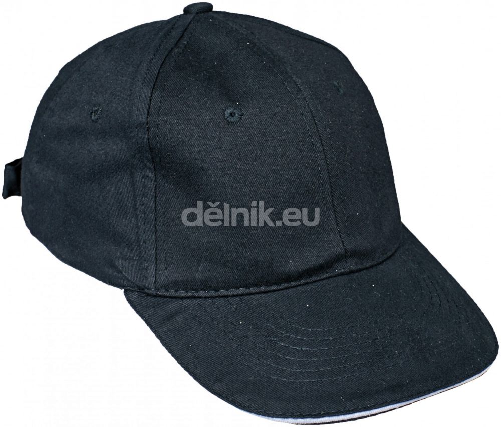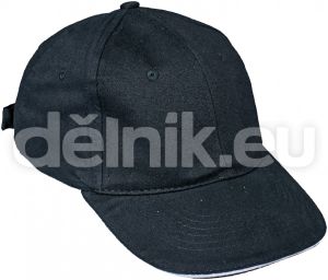 TULLE pracovní čepice černá - Baseballová šestipanelová čepice s kontrastní linkou vlepenou v kšiltu, zapínání na kovovou sponu, materiál 100% česaná bavlna