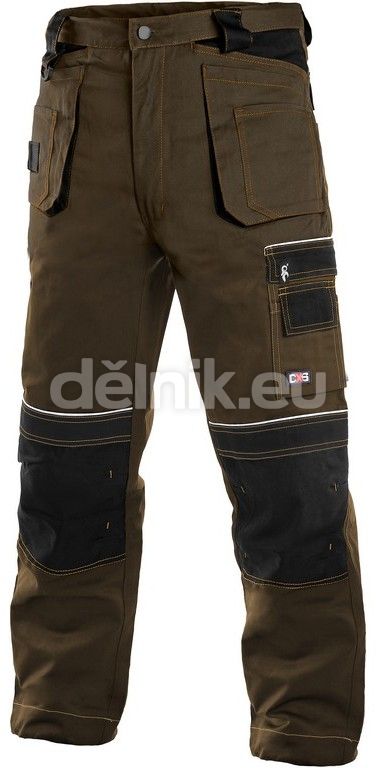 Pánské, do pasu s poutky na opasek, zdvojená kolena pro nákoleníky, našité kapsy, klínové přední kapsy s poutky na nářadí, reflexní doplňky, materiál : kepr 60% bavlna 40% polyester 280g/m2. Velikost: 46 - 64. Normy: EN340.