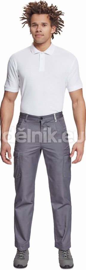 pánské lehké pracovní kalhoty s elastickým pasem; 2 boční kapsy; 1 kapsička na mince; 2 multifunkční stehenní kapsy; 2 zadní kapsy; nastavitelná délka nohavic; svrchní materiál: 65 % polyester, 35 % bavlna, 195 g/m²