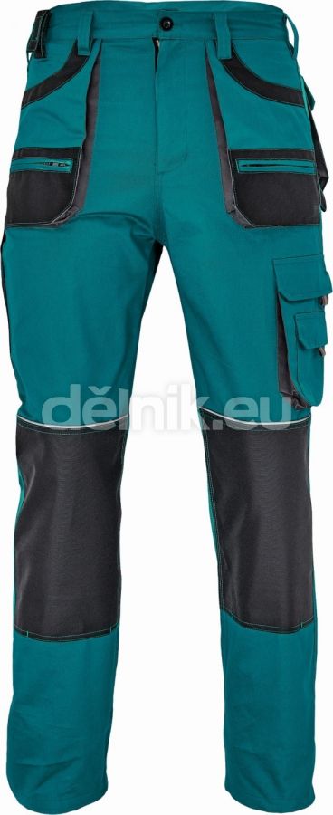 pánské bavlněné pracovní kalhoty; 6 funkčních kapes; polyester Oxford zesílení v kolenních částech s možností vkládání ochranných nákoleníků; nastavitelná délka nohavic; svrchní materiál: 100 % bavlna, 235 g/m²; svrchní zesílená vrstva: 100 % polyester