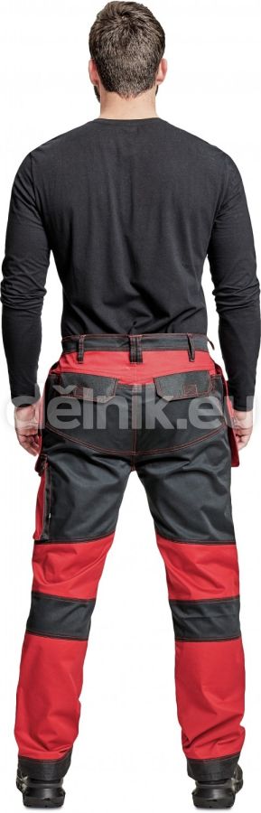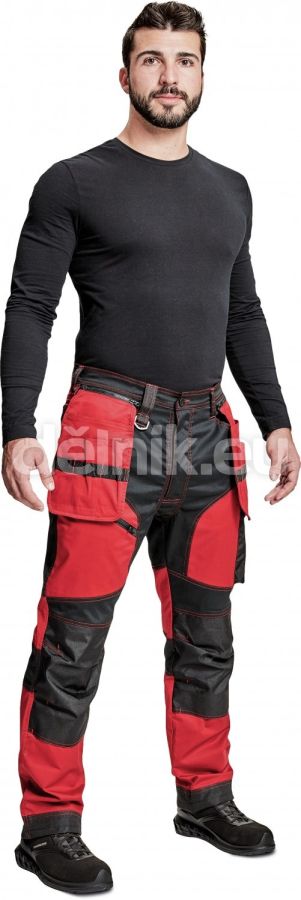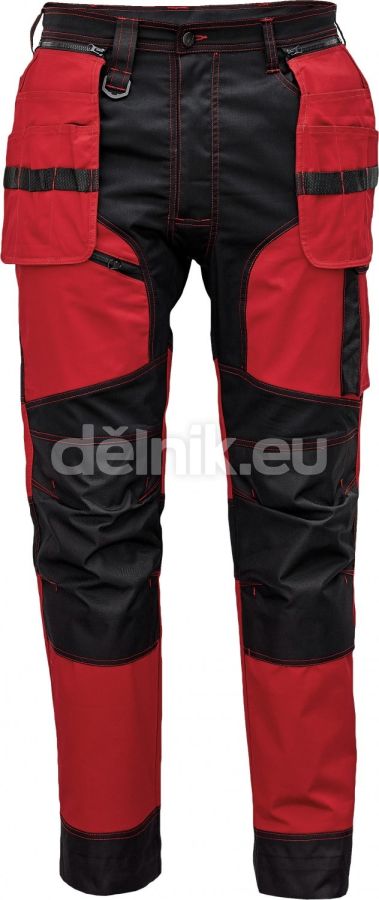 pánské pracovní kalhoty z elastického materiálu; 2 postranní kapsy a 2 vložitelné multifunkční kapsy na nářadí; "D" kroužek; 1 boční kapsa na nohavici s patkou; 1 kapsa na nohavici na zip; 2 nakládané zadní kapsy s patkou; zesílená oblast kolen s možností vkládání kolenních výztuh; záložka na nohavici umožňující prodloužení délky až o 5 cm; zesílená zadní strana spodku nohavice; dekorativní prošití; svrchní materiál: 98 % bavlna, 265 g/m², 2 % elastan