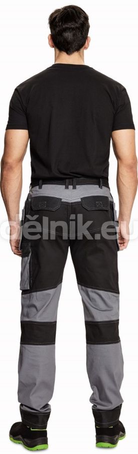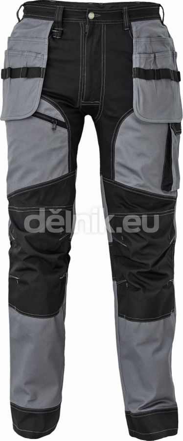 pánské pracovní kalhoty z elastického materiálu; 2 postranní kapsy a 2 vložitelné multifunkční kapsy na nářadí; "D" kroužek; 1 boční kapsa na nohavici s patkou; 1 kapsa na nohavici na zip; 2 nakládané zadní kapsy s patkou; zesílená oblast kolen s možností vkládání kolenních výztuh; záložka na nohavici umožňující prodloužení délky až o 5 cm; zesílená zadní strana spodku nohavice; dekorativní prošití; svrchní materiál: 98 % bavlna, 265 g/m², 2 % elastan
