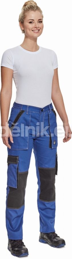 dámské lehké pracovní kalhoty s elastickým pasem; 2 přední kapsy, 2 stehenní kapsy; 2 zadní kapsy; zesílení nohavic v oblasti kolen; nastavitelná délka nohavic; svrchní materiál: 100 % bavlna, 220 g/m²