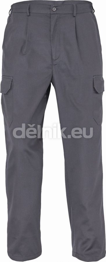 pánské pracovní kalhoty s pružným pasem; 2 postranní kapsy; 2 stehenní kapsy s klopou na suchý zip; 1 zadní kapsa na suchý zip; nastavitelná délka nohavic; svrchní materiál: 80 % polyester, 195 g/m², 20 % bavlna