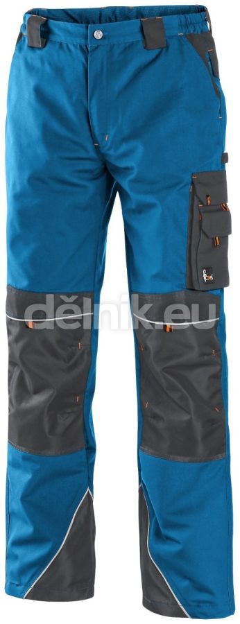 Pánské montérkové kalhoty, pas s poutky na opasek a gumou v bocích, přední klínové kapsy, multifunkční kapsy na obou stranách, kolena zesílena materiálem 600D polyesterem s možností vložení kolenních výztuh, dvě zadní kapsy s klopami, spodní část nohavic vyztužena materiálem 600D polyester, reflexní doplňky. Doporučené použití: stavebnictví, strojírenství, lehký průmysl, automobilový průmysl, logistika, skladová manipulace, spedice, autoservisy, údržba, montáže, zemědělství, zahrada, hobby. Gramáž: 270g/m2, Svrchní materiál: 65 % polyester, 35 % bavlna.