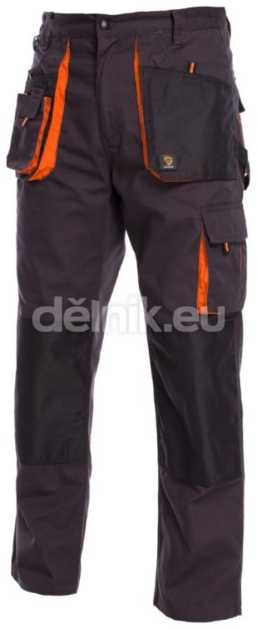 Kalhoty z polyesterovo-bavlněné tkaniny o gramáži 260 g/m², 9 funkčních kapes, včetně dvojitých předních kapes s přídavnou kapsou na smartphone, zadní kapsy kryté klopou na suchý zip, cargo kapsa a kapsa na metr. Výztuhy s protioděrovým materiálem na kapsách a kolenou, s možností použití chráničů kolen. Dodatečné nastavení obvodu pasu. Výztužné švy a trojité prošívání pro dlouhou životnost. Složení: polyester 80%, bavlna 20%.