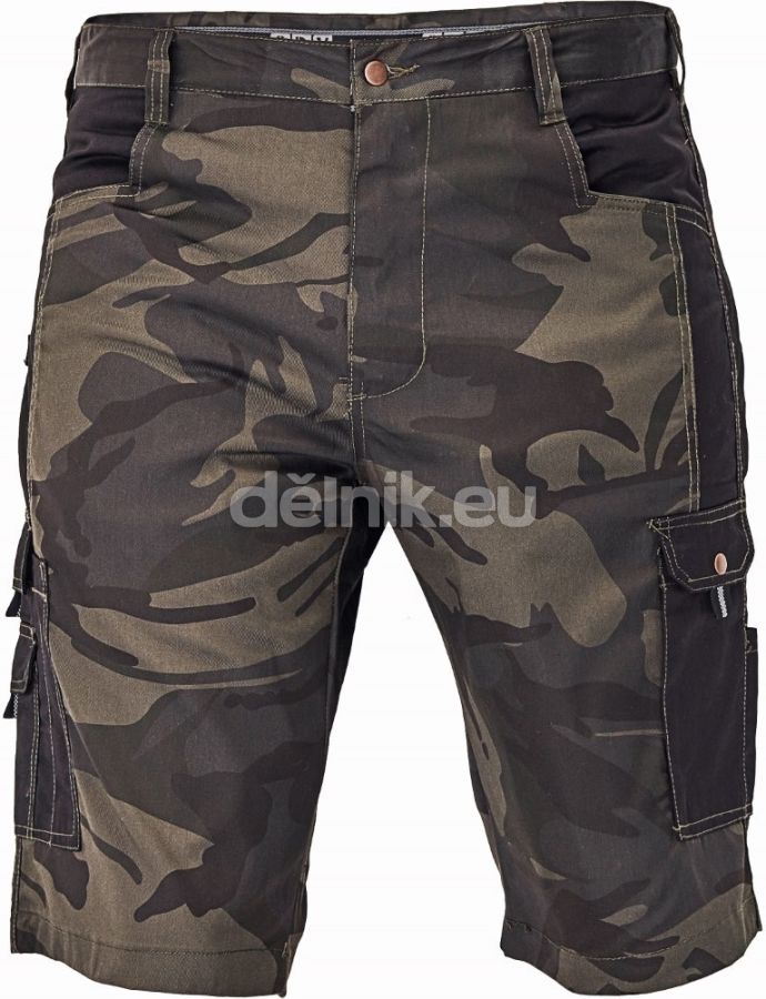 pánské šortky z lehkého T/C twillu 190 g /m²; 2 zadní nakládané kapsy; 2 boční kapsy; 2 multifunkční kargo kapsy; padnoucí střih; oblíbený a praktický maskáčový vzor; svrchní materiál: 65 % polyester, 35 % bavlna, 190 g/m²