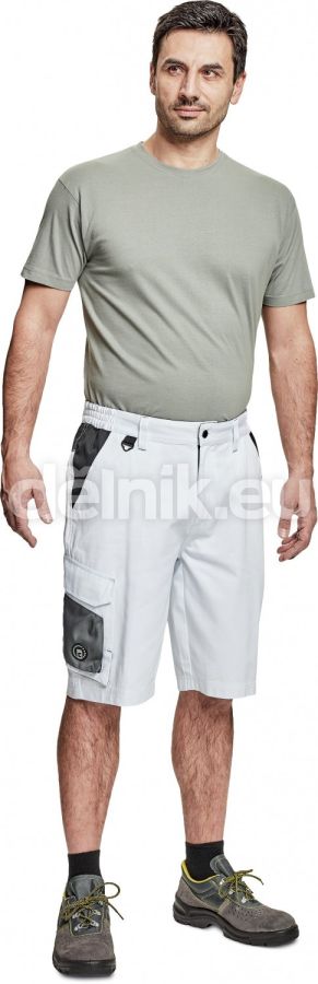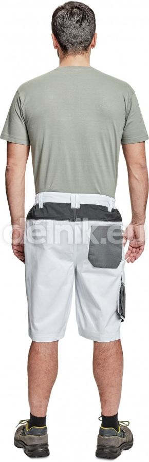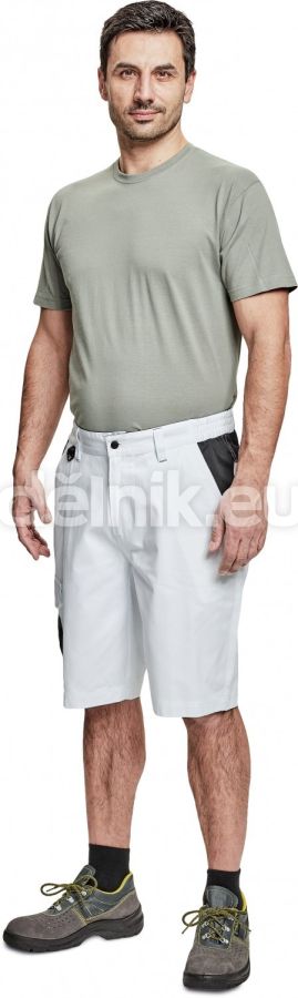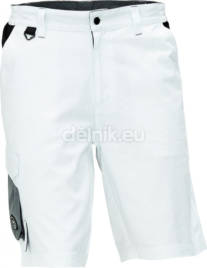 pánské pracovní šortky; materiál s vysokým procentem bavlněného podílu; moderní střih; 2 boční kapsy; 1 multifunkční kapsa na nohavici; 1 zadní kapsa se zapínáním na suchý zip; elastický pas; "D" kroužek; kontrastní paspulky; svrchní materiál: 60 % bavlna, 40 % polyester, 230 g/m²; svrchní zesílená vrstva: 100 % polyester
