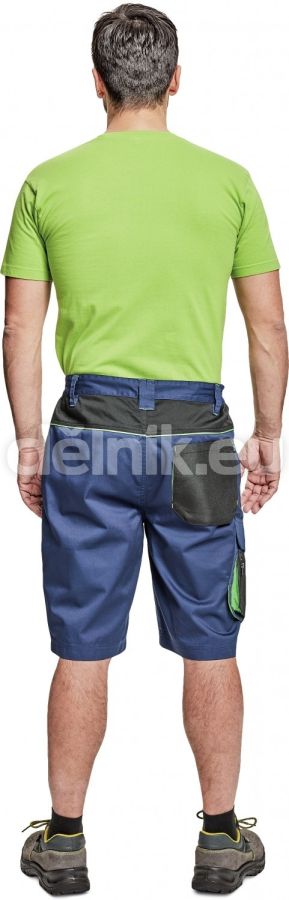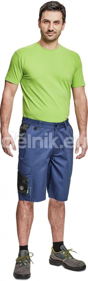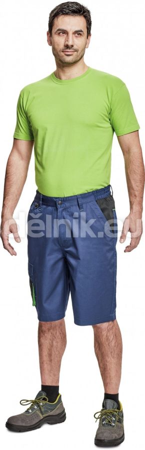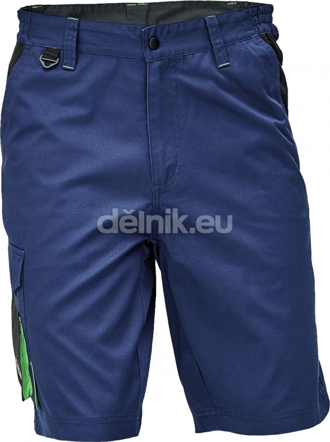 pánské pracovní šortky; materiál s vysokým procentem bavlněného podílu; moderní střih; 2 boční kapsy; 1 multifunkční kapsa na nohavici; 1 zadní kapsa se zapínáním na suchý zip; elastický pas; "D" kroužek; kontrastní paspulky; svrchní materiál: 60 % bavlna, 40 % polyester, 230 g/m²; svrchní zesílená vrstva: 100 % polyester