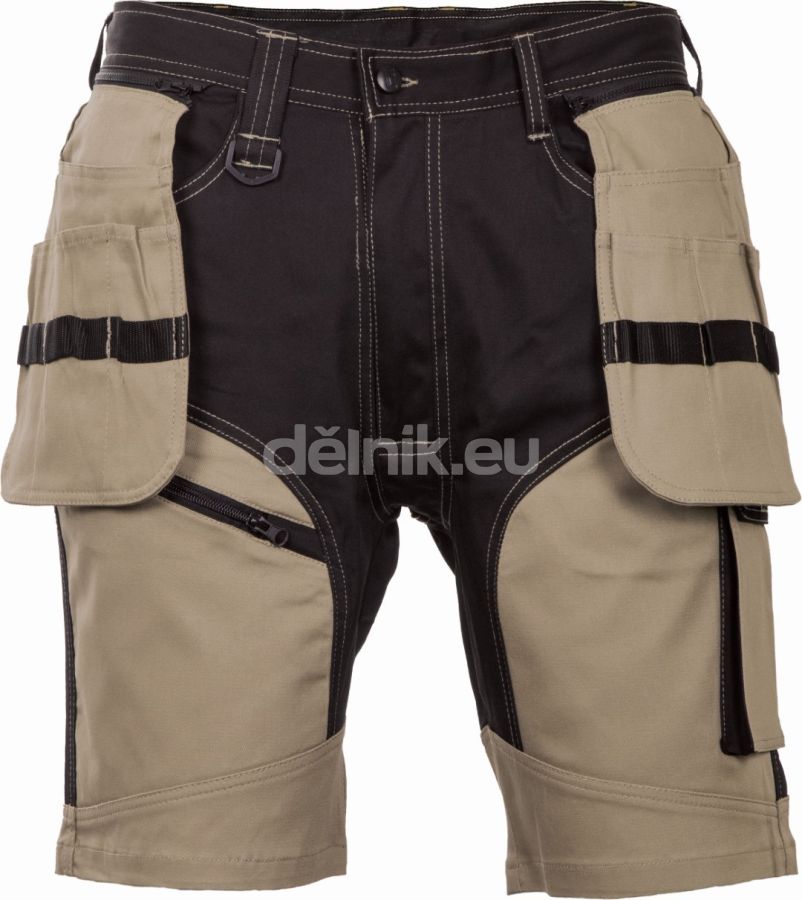 kvalitní pánské pracovní šortky z elastického materiálu; multifunkční kapsy; 2 extra odepínací multifunkční kapsy na zip; dekorativní prošití; svrchní materiál: 98 % bavlna, 2 % elastan, 265 g/m²