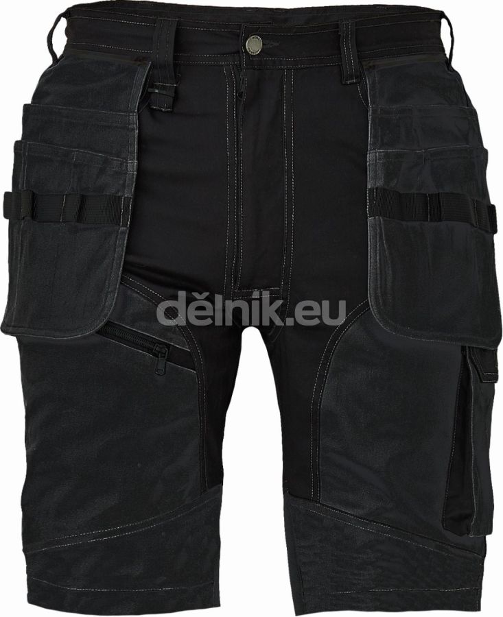 kvalitní pánské pracovní šortky z elastického materiálu; multifunkční kapsy; 2 extra odepínací multifunkční kapsy na zip; dekorativní prošití; svrchní materiál: 98 % bavlna, 2 % elastan, 265 g/m²