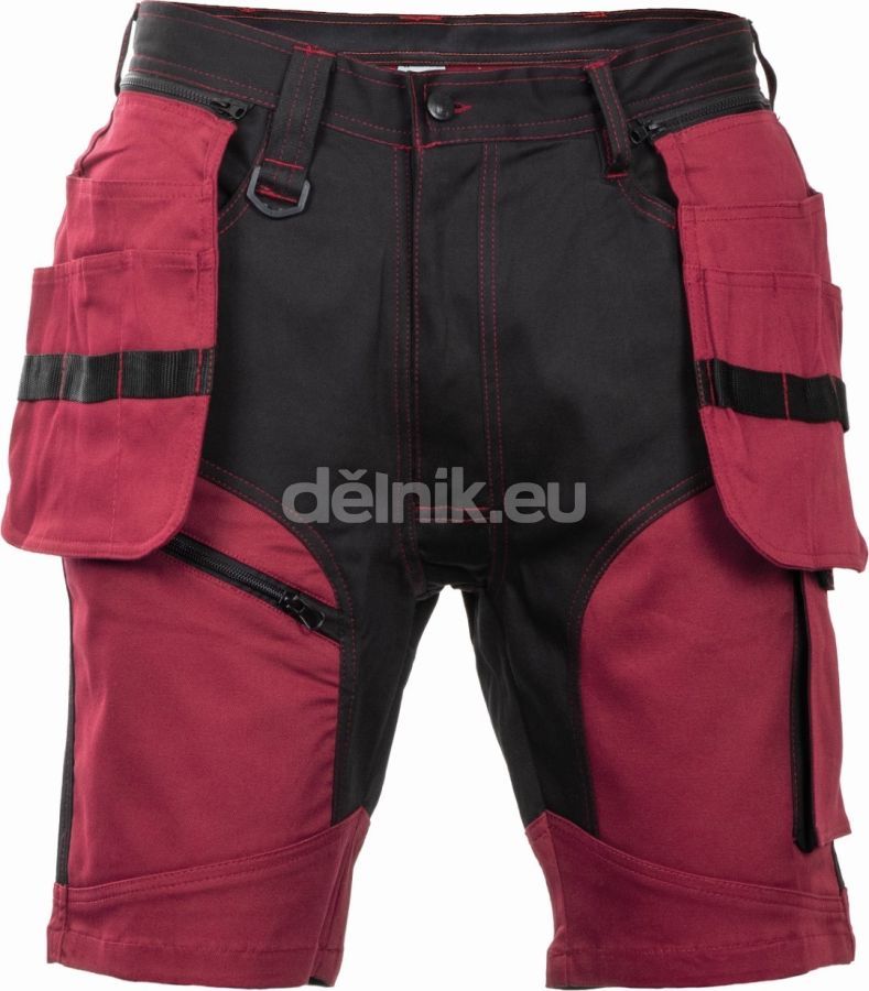 kvalitní pánské pracovní šortky z elastického materiálu; multifunkční kapsy; 2 extra odepínací multifunkční kapsy na zip; dekorativní prošití; svrchní materiál: 98 % bavlna, 2 % elastan, 265 g/m²