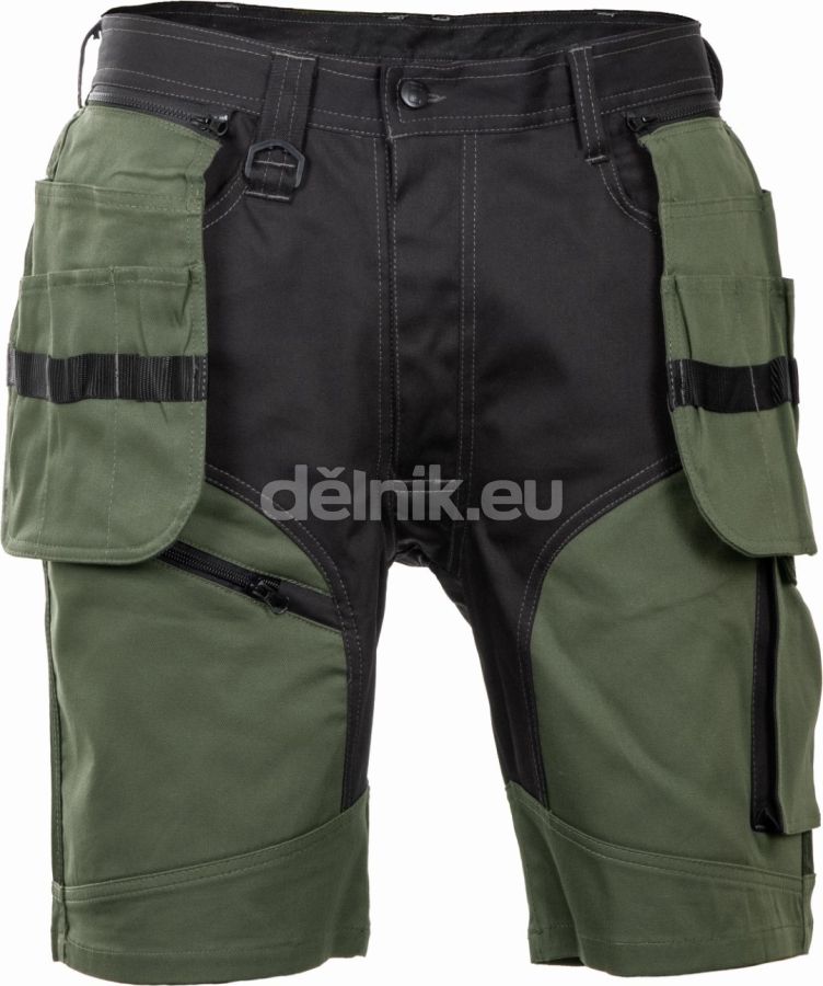 kvalitní pánské pracovní šortky z elastického materiálu; multifunkční kapsy; 2 extra odepínací multifunkční kapsy na zip; dekorativní prošití; svrchní materiál: 98 % bavlna, 2 % elastan, 265 g/m²