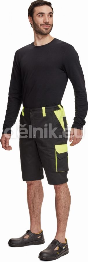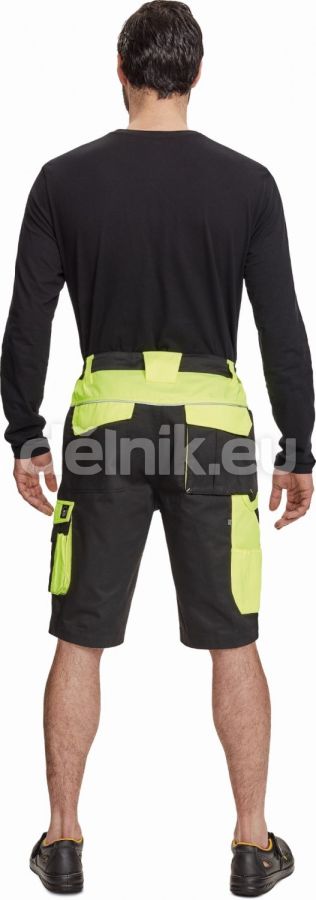 pánské pracovní šortky s elastickým pasem; 2 přední kapsy, 2 zadní kapsy; reflexní paspulky; materiál: 65 % polyester, 35 % bavlna, 250 g/m²