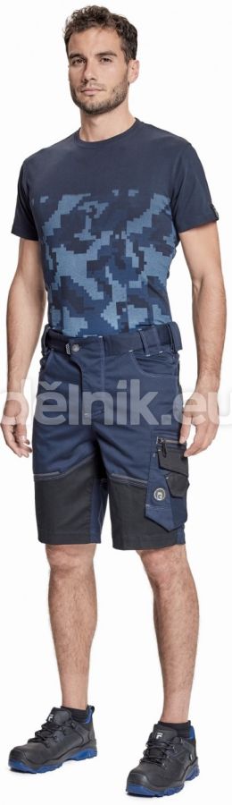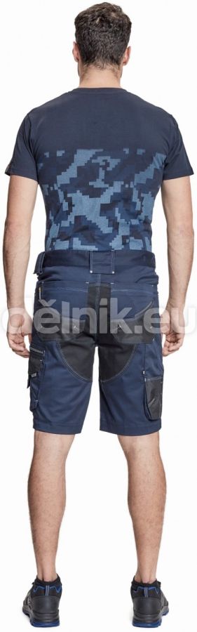 pánské pracovní šortky, elastický inovativní materiál TRIFIBETEX®, slim střih, snížený pružný pas, odolné trojité prošití nohavic a sedu, prostorné multifunkční přední kapsy s poutky na nářadí, 2 zadní kapsy na suchý zip, stehenní kapsa na telefon s klopou a zapínáním na suchý zip, kapsa na metr a nůž, poutko na kladivo, "D" kroužek, poutko na nářadí v pase, originální zpracování zapínání kalhot, reflektivní prvky v barevném odstínu; svrchní materiál: 62 % bavlna, 35 % polyester, 3 % elastan, 260 g/m², TRIFIBETEX; svrchní zesílená vrstva: polyamid (nylon)