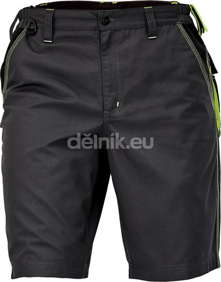 • pánské pracovní šortky s elastickým pásem • 2 postranní kapsy a 2 kapsy s patkou na zadním díle • poutko na nářadí v kontrastní barvě • D kroužek pro přichycení identifikační karty • dekorativní prošití v kontrastní hi-vis barvě