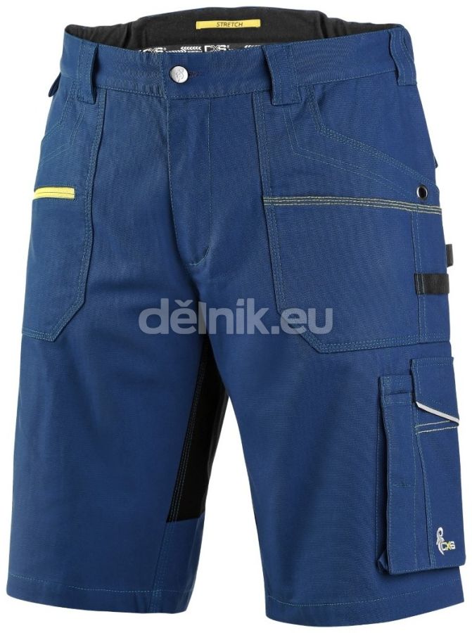 Pánské montérkové kraťasy, strečová tkanina umožňující volný pohyb, pas s poutky na opasek, přední kapsy s kapsou na zip, multifunkční kapsy na obou stranách, dvě zadní kapsy - jedna s klopou, reflexní doplňky. Doporučené použití: letní pracovní oděv, strojírenství, stavebnictví, lehký průmysl, automobilový průmysl, logistika, skladová manipulace, spedice, autoservisy, údržba, montáže, zemědělství, zahrada, hobby. Složení: 98 % bavlna 2 % elastan, 250 g/m2